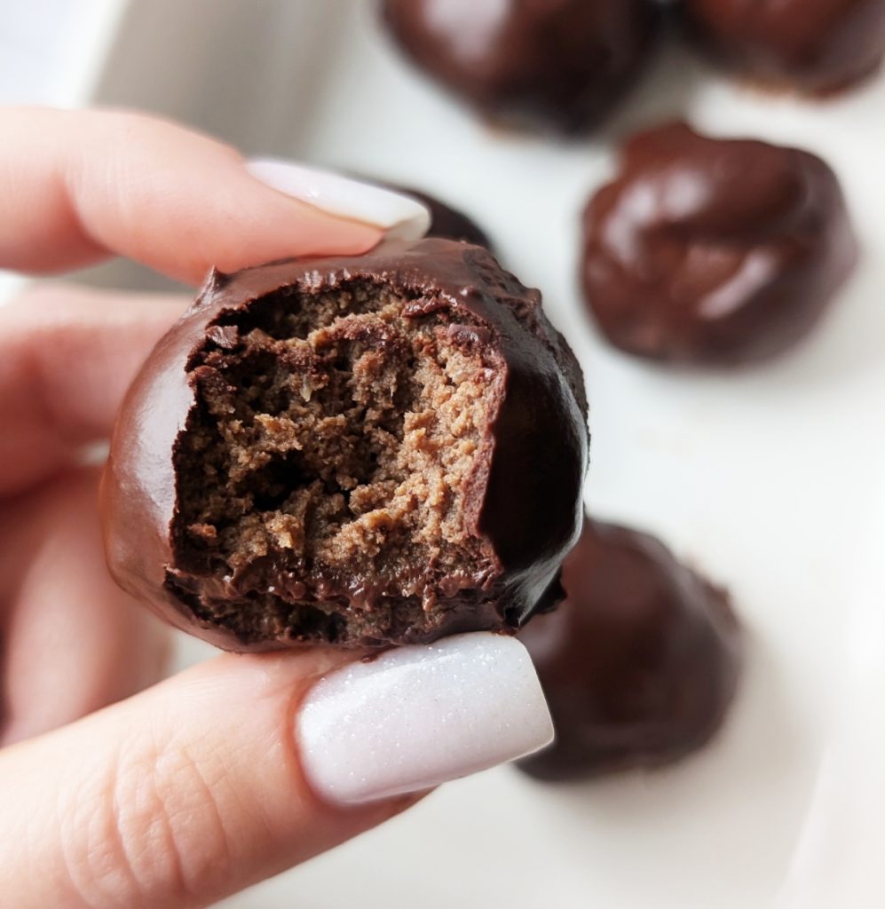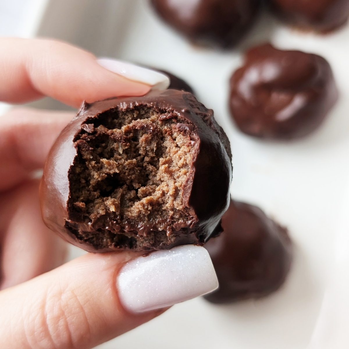 Zupełnie przypakowa wersja nowych kulek w stylu trufli piernikowych – tym razem jeszcze bardziej na zdrowo i bez laktozy. Tworząc inne ciasto przy pierwszej próbie wyszło zbyt luźne i postanowiłam wykorzystać, by uformować kulki. Wyszły przepyszne!