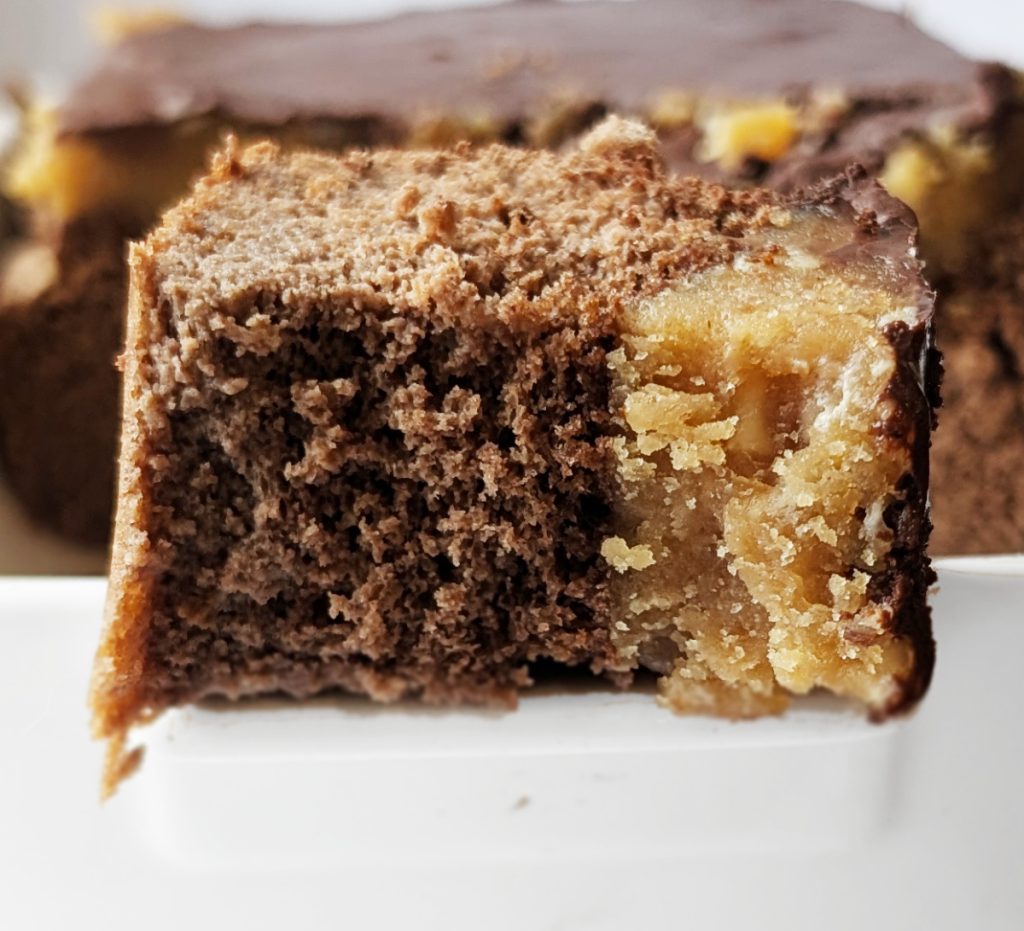 Polewa: rozpusczone masło (może być mleczko kokosowe) i masło orzechowe 1:1 i biała czekolada. Mniej więcej po 100 g. Trochę dużo wyszło 🙂