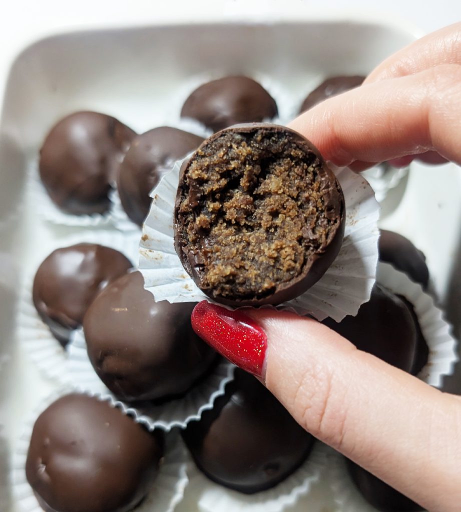 - Połącz wszystkie składniki i wymieszaj dokładnie – najlepiej mi się to łączyło po prostu rękami – i lep kulki. Opcjonalnie polej czekoladą – jak dla mnie są wystarczająco smaczne bez, ale musi być przepięknie na bloga 🙂